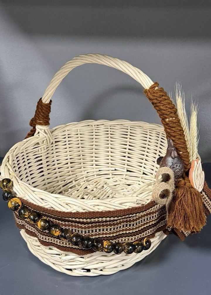 Ця пасхальна корзина стане невід'ємною частиною вашого святкового декору, надаючи особливого дотику весняного відродження та вражаючи гостей своєю красою та символікою