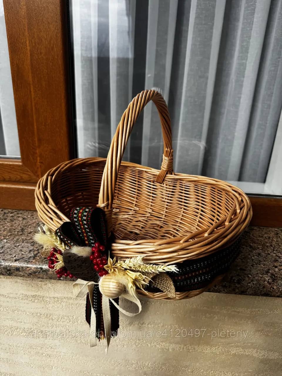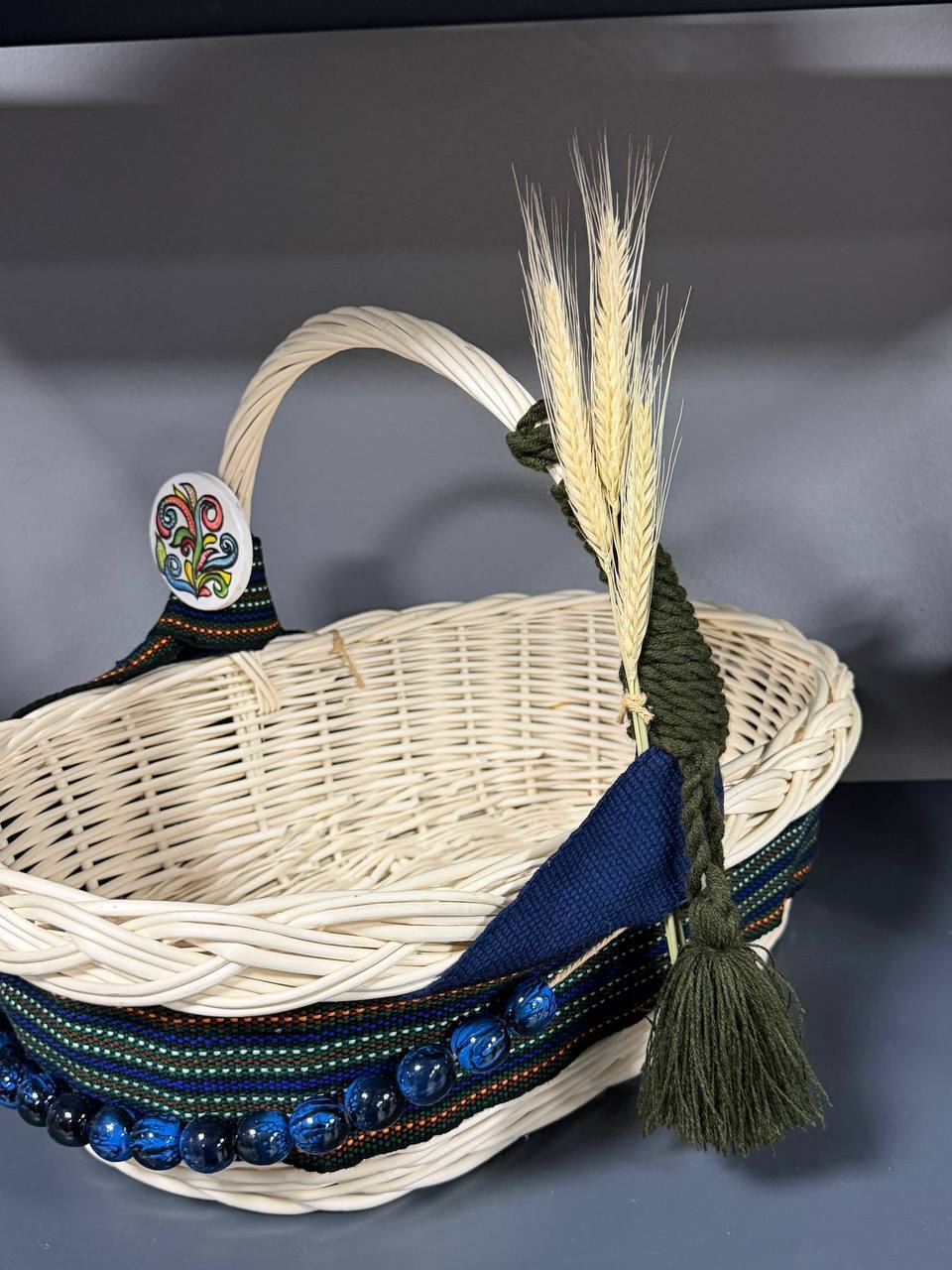 Унікальний дизайн: Кожен кошик є унікальним, адже керамічні підвіски розписуються вручну, а візерунки на тканому поясі можуть незначно відрізнятися. Ви станете власником ексклюзивного виробу, який не має аналогів.